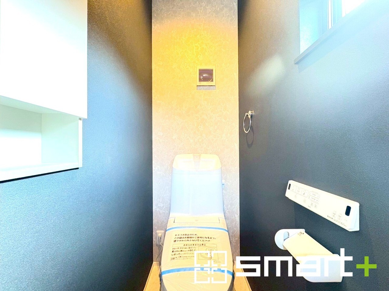 B号棟 ~小窓付きの明るいトイレ~ ・使用後や掃除の際に窓を開ければ、外からの新鮮な空気を取り込み素早く換気ができます。 ・場所を取らない埋め込みタイプの収納付き。トイレットペーパーのストックや掃除用具など収納に困りません。