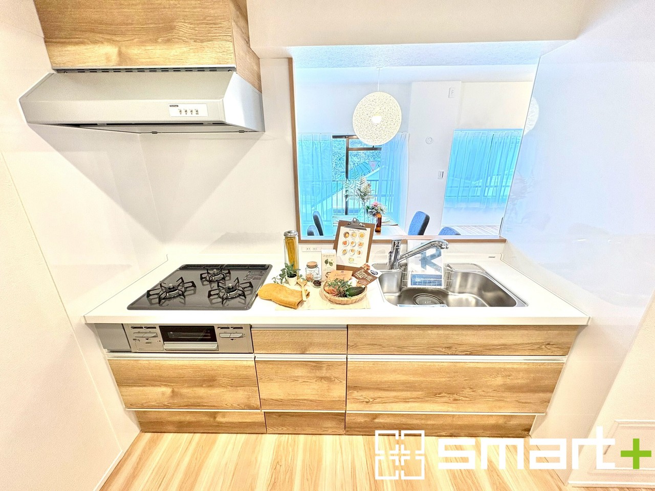 ~使い勝手の良いシステムキッチン~ ・料理がしやすい設計のキッチンでお料理もはかどりますね。 ・もちろんキッチン下部は収納になっておりますので、フライパンなども収納可能です。