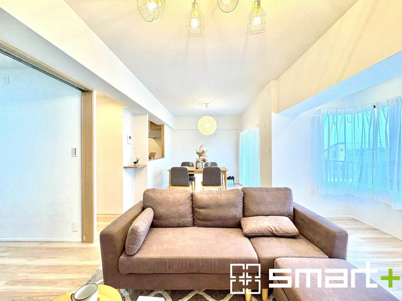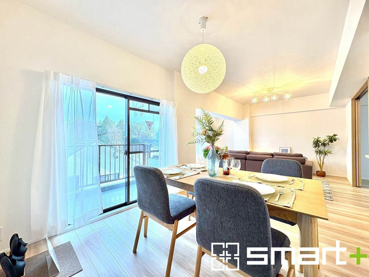 ~穏やかな陽の入るLDK~ ・大きな窓のあるLDKは陽当りも良好で明るい空間となっております。 ・ご家族団らんなど過ごす時間の多いLDKが明るいのは嬉しいポイントですね。