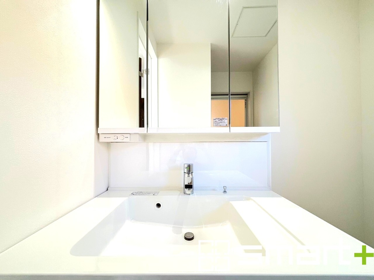 ~人気の三面鏡を採用~ ・洗面台は三面鏡仕様なので鏡の角度を変える事で頭の後ろの方までご確認可能です。 ・鏡の裏が収納になっておりますので、洗面台周りもスッキリと片付きます。