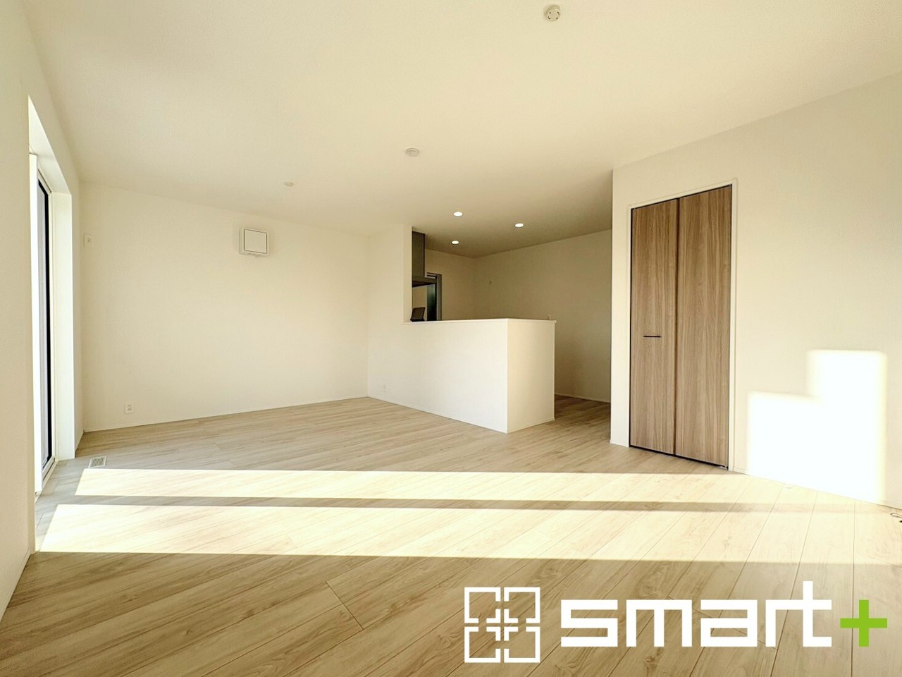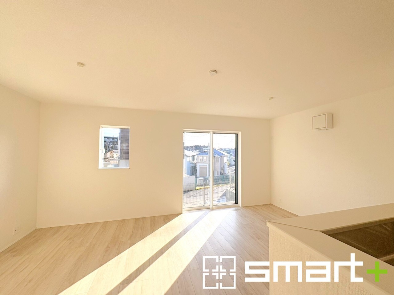 2号棟 ~穏やかな陽の入るLDK~ ・大きな窓のあるLDKは陽当りも良好で明るい空間となっております。 ・ご家族団らんなど過ごす時間の多いLDKが明るいのは嬉しいポイントですね。
