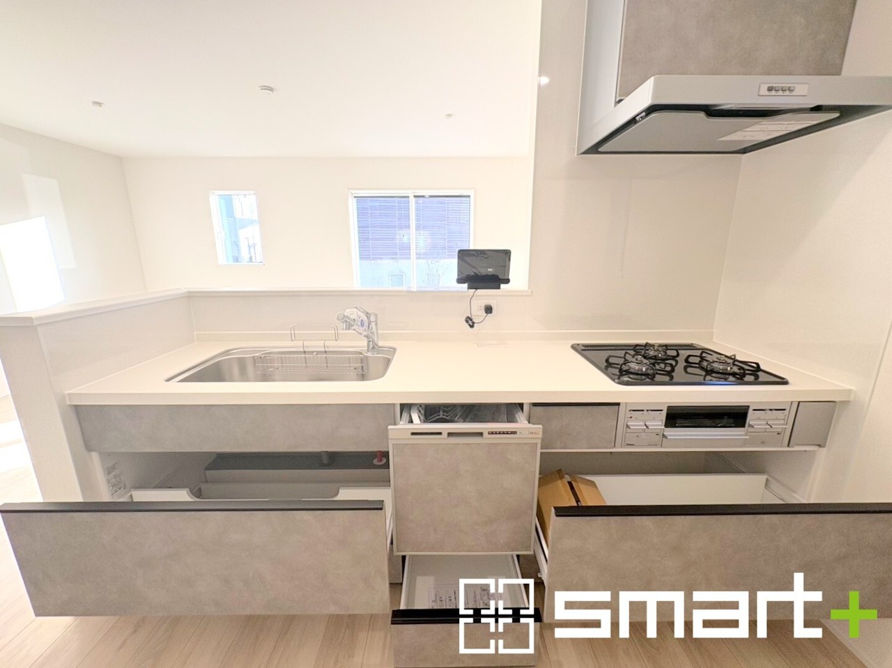 2号棟 ~食器洗浄機を標準装備~ ・キッチンにはビルトインタイプの食器洗浄機を標準装備。 ・家事にかける時間を削減でき、「自分時間」を増やすことができる嬉しいアイテムです。