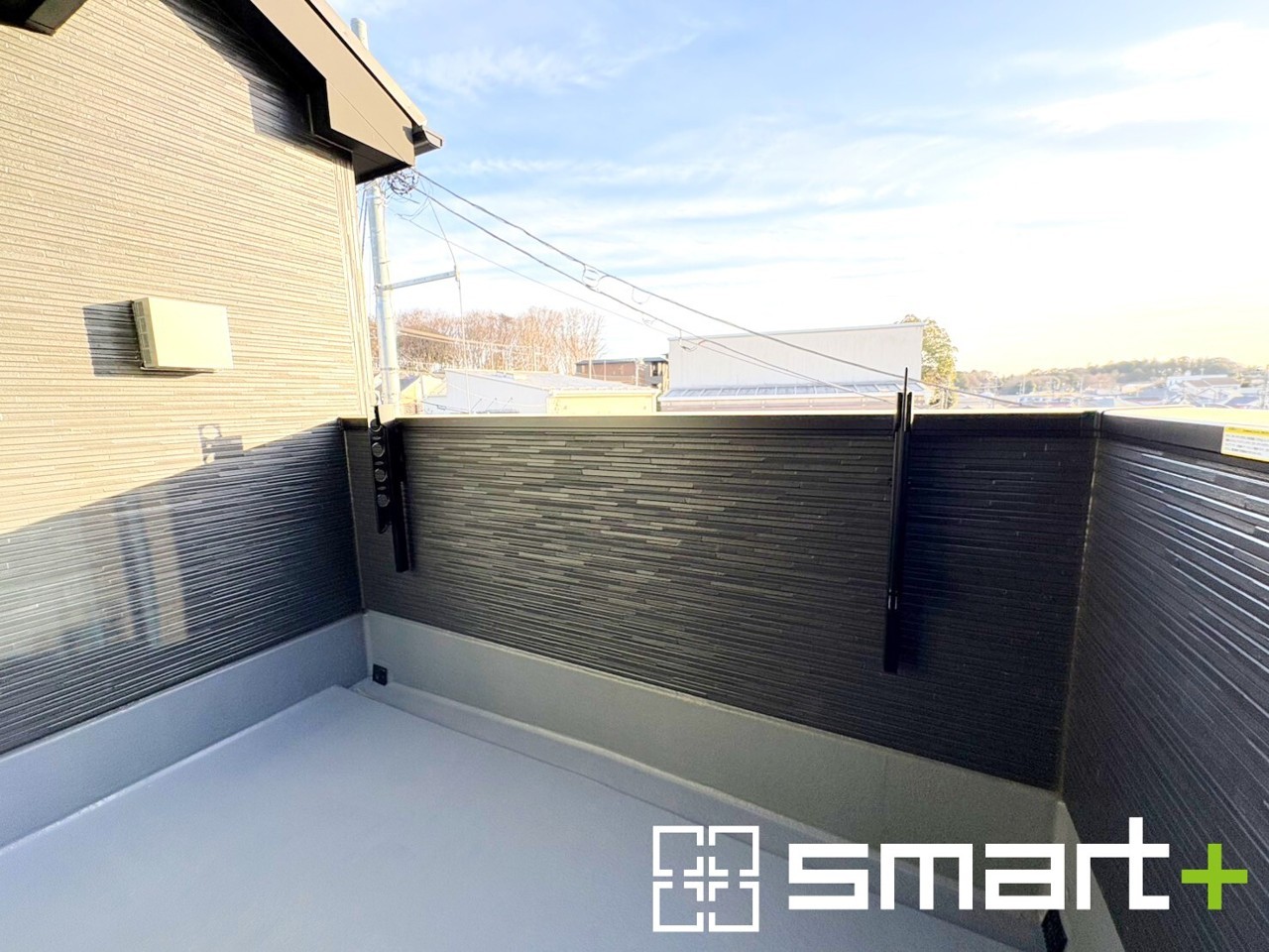 2号棟 ~ワイドバルコニーを採用~ ・バルコニーはワイドタイプなので、洗濯物を沢山干す事が可能です。 ・テラス屋根などのオプションもお気軽にご相談くださいませ。