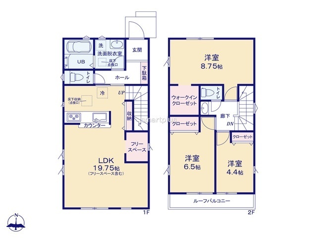 | 間取 | 3LDK (LDK19.75帖、洋室8.75帖、洋室6.5帖、洋室4.4帖) | ||