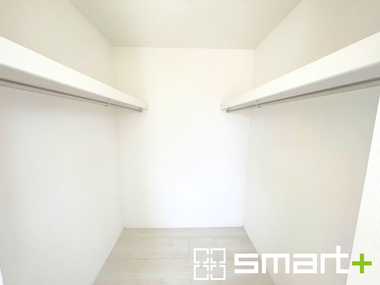 ~ウォークインクローゼット~ ・大容量のウォークインクローゼットは衣類をハンガーに掛けたまま収納できます。 ・季節ものや小物類なども整理整頓しやすく生活空間が広がりますね。