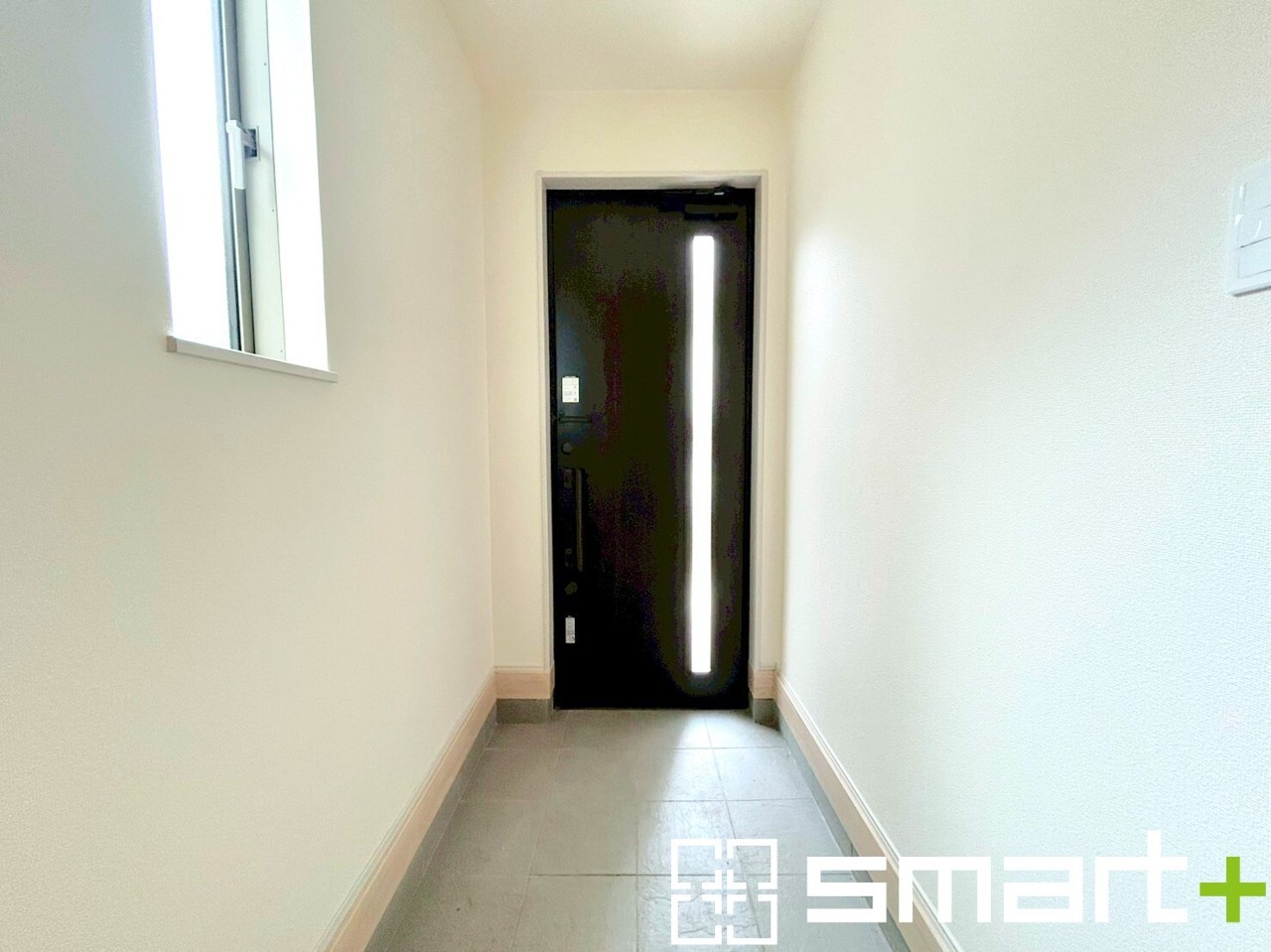 ~穏やかな陽が入る玄関~ ・窓に加えて玄関ドアのガラス部分からも穏やかな陽が入り、明るい玄関になります。 ・備え付けのシューズボックスはたっぷりしまえて玄関がスッキリ片付きますね。