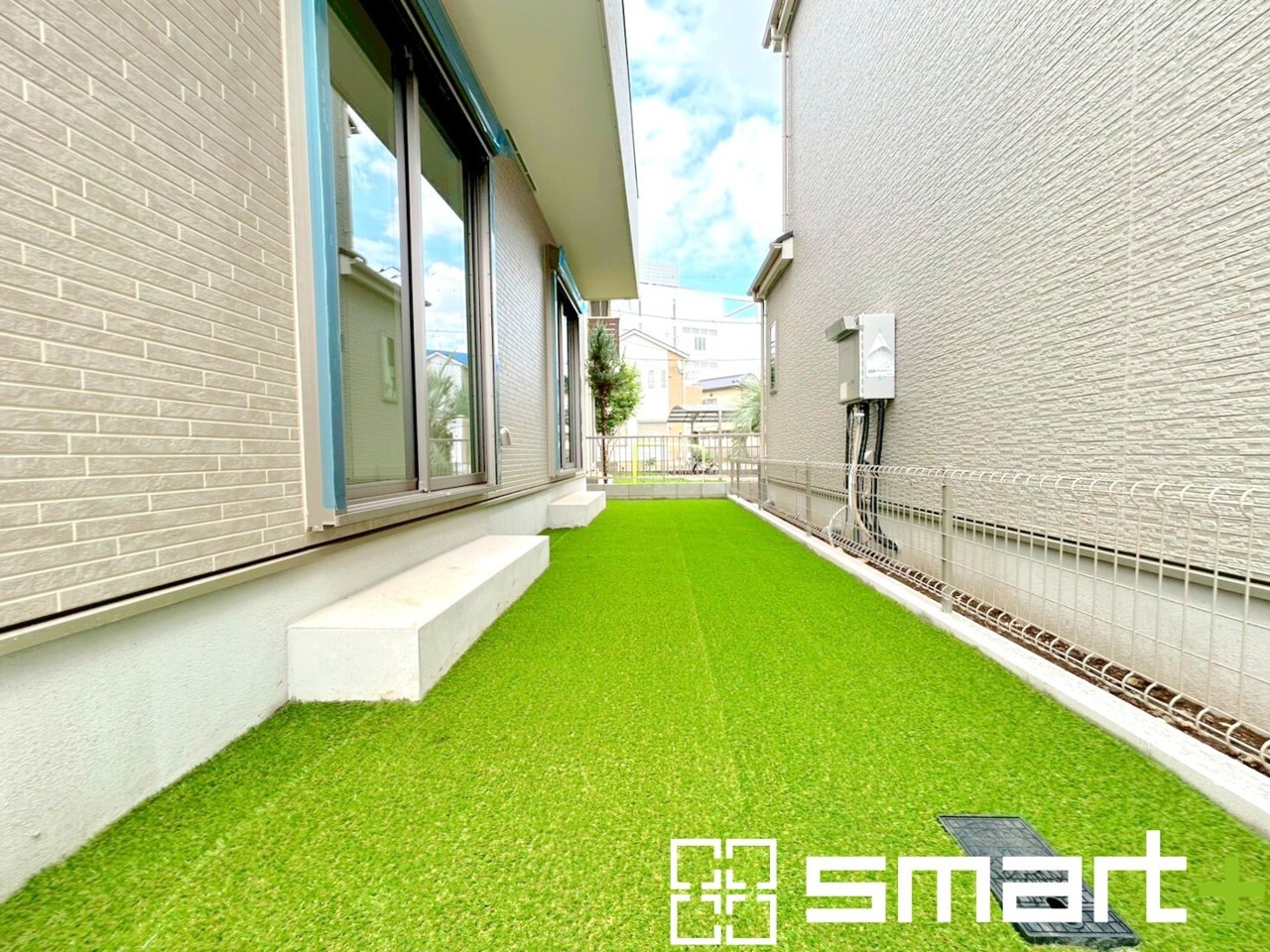 ~人工芝のある綺麗なお庭~ ・標準で人工芝を敷設しておりますので、見た目にも綺麗なお庭となっております。 ・人工芝の場合雑草が生えてこず、管理が楽なのも嬉しいポイントです。