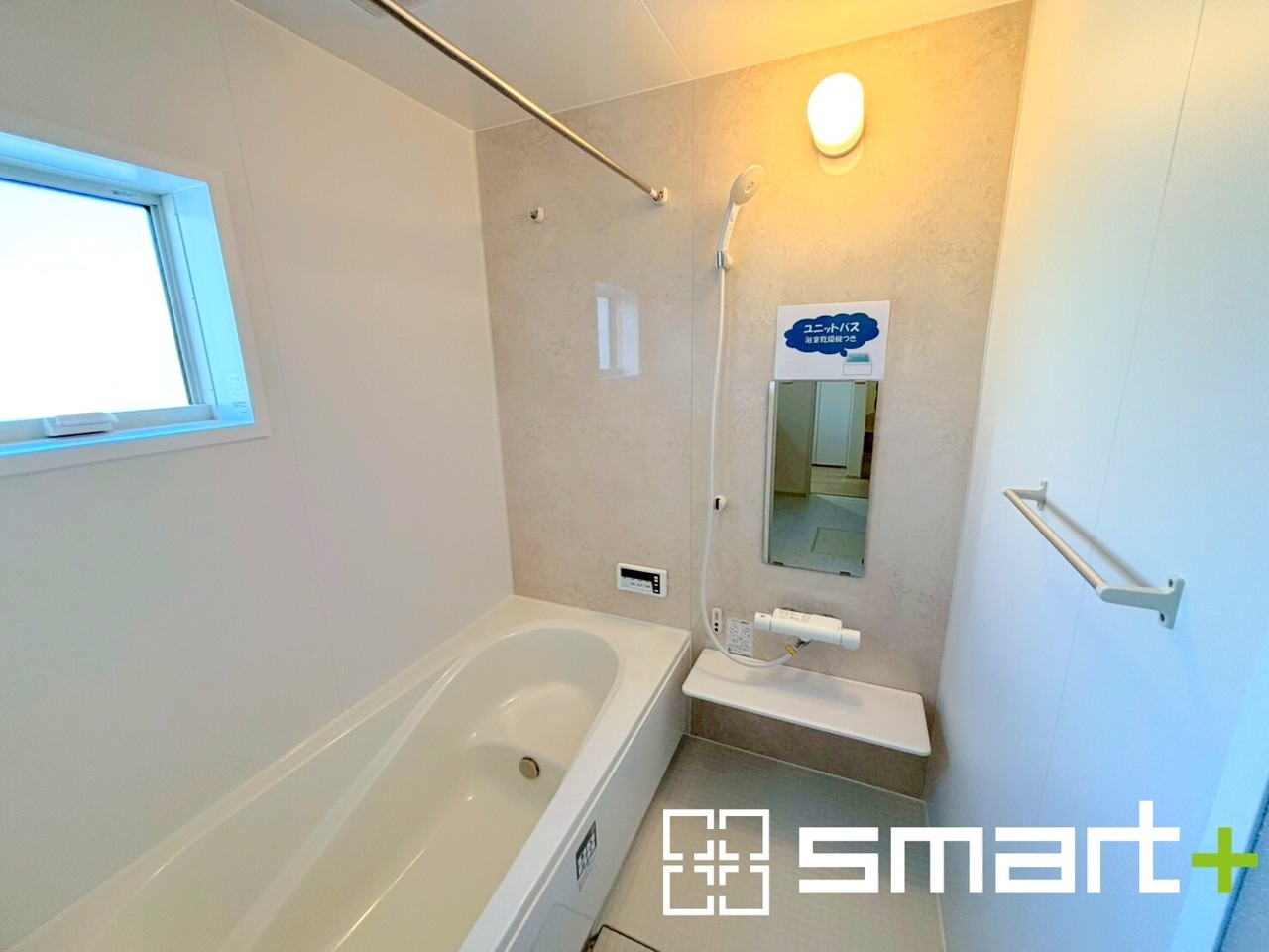 ~浴室乾燥機付きの浴室~ ・浴室には乾燥機が付いているので雨の日でも洗濯物を干すことが可能です。 ・水はけの良い床材など機能面も充実。マイクロバブルなどオプションもご相談くださいませ。