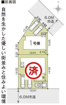 1号棟 ~閑静な住宅街の立地~ ・周辺は閑静な住宅街となっておりますので、静かな暮らしをご実現いただけます。 ・前面道路の交通量も多くないので、小さなお子様がいるご家庭でもご安心ですね。