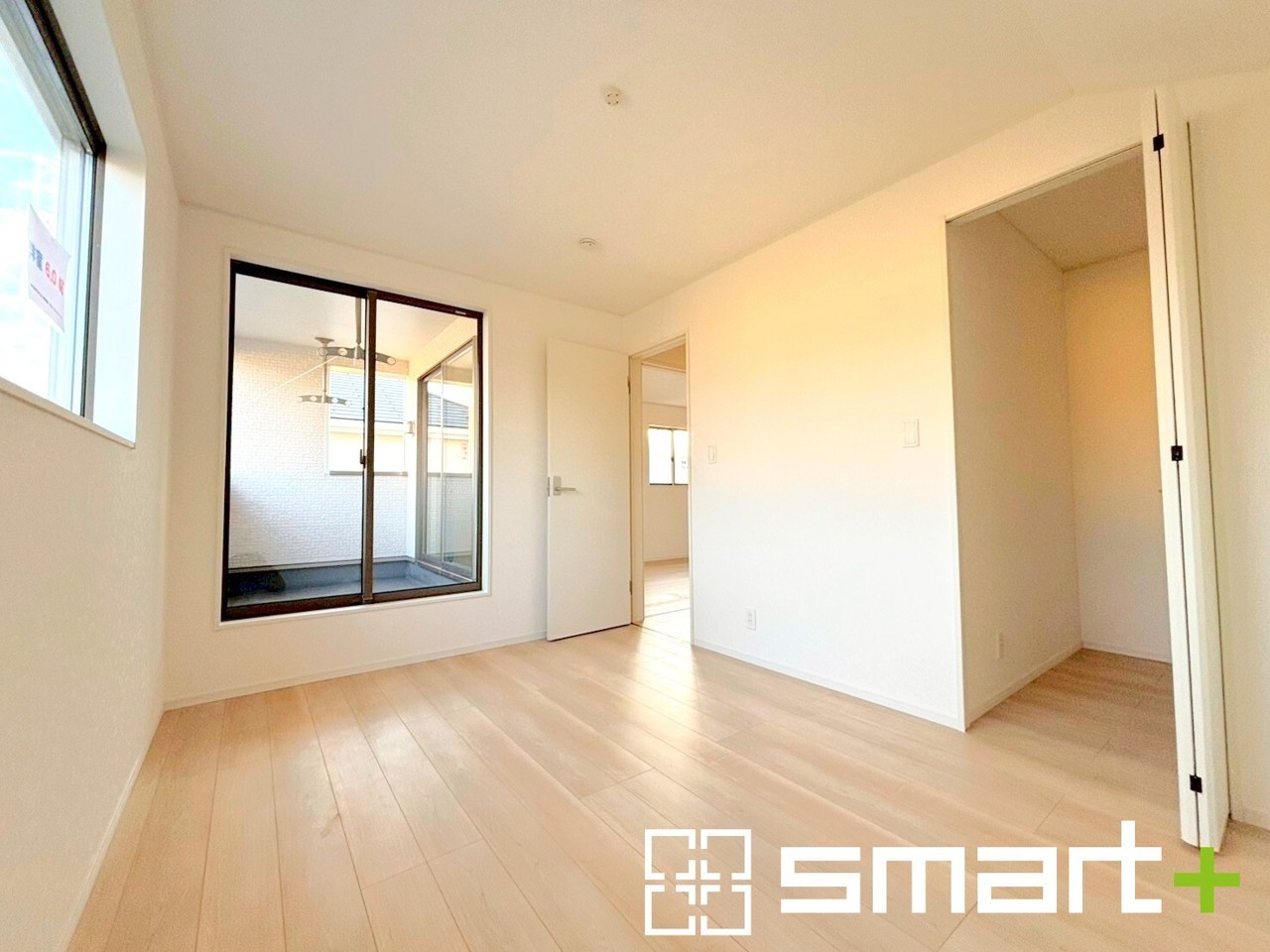 2号棟 ~明るく暖かな光が差し込む洋室~ ・大きな窓からたっぷりの光が舞い込み、お部屋全体を優しく包み込んでくれます。 ・大容量の収納スペースで整理整頓しやすく、生活空間が広がりますね。
