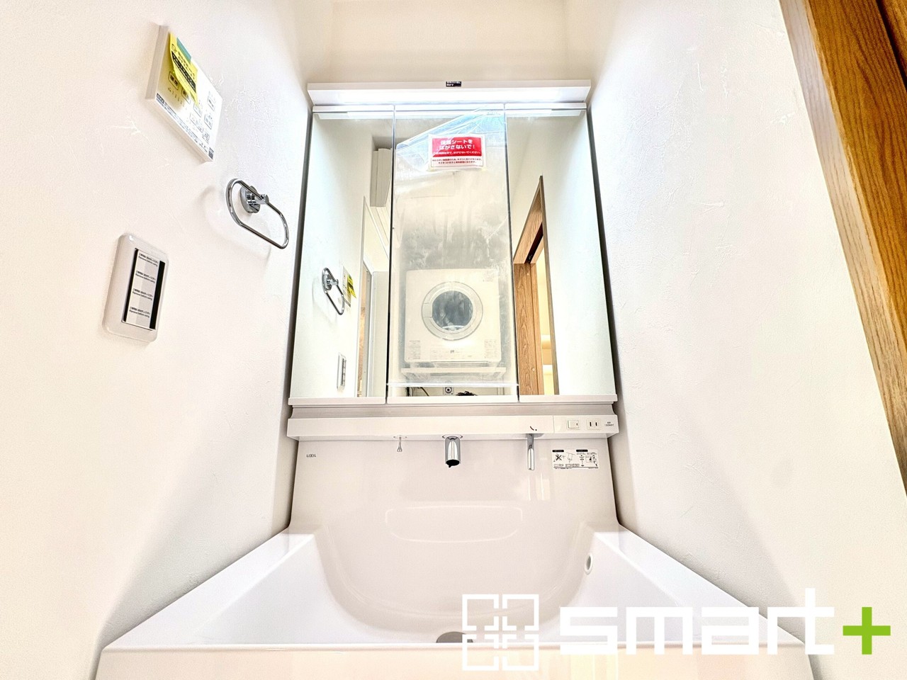 ~人気の三面鏡を採用~ ・洗面台は三面鏡仕様なので鏡の角度を変える事で頭の後ろの方までご確認可能です。 ・鏡の裏が収納になっておりますので、洗面台周りもスッキリと片付きます。