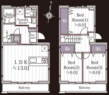 | 間取 | 3LDK (LDK13帖、洋室6帖、洋室6帖、洋室6帖) | ||