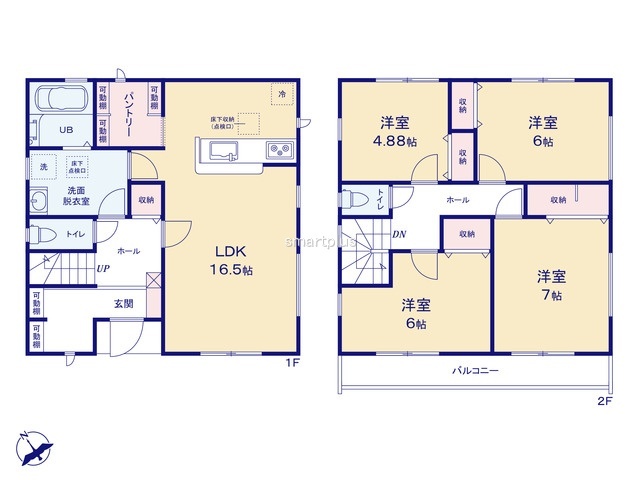 使い勝手の良い4LDKプラン~ ・シンプルで使い勝手が良く、人気の高い4LDKのプランを採用。 ・収納もしっかりございますので、お家の中がスッキリと片付きます。 (1号棟)