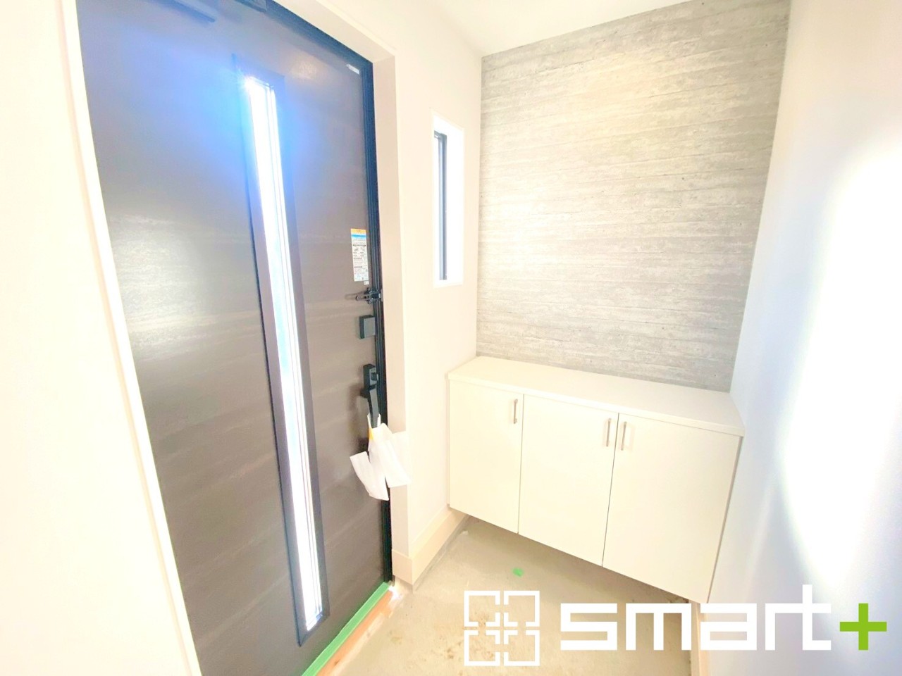 ~穏やかな陽の入る玄関~ ・玄関ドアのガラス部分に加えてシューズボックスの上に窓を設ける事で穏やかな陽の入る玄関に。 ・ご家族やご来客を明るい空間で出迎えてくれます。