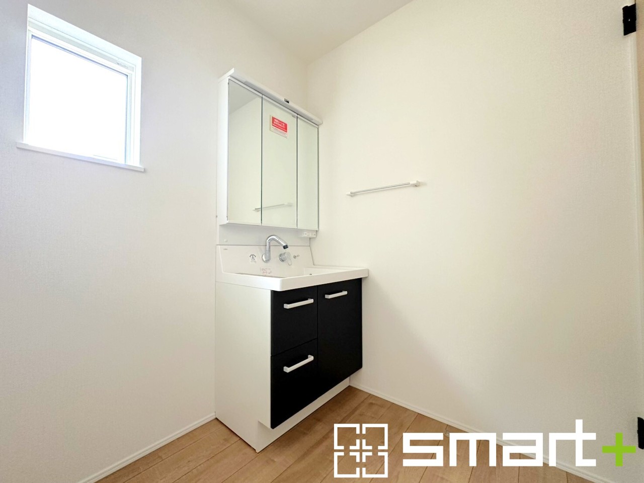 ~人気の三面鏡を採用~ ・洗面台は三面鏡仕様なので鏡の角度を変える事で頭の後ろの方までご確認可能です。 ・鏡の裏が収納になっておりますので、洗面台周りもスッキリと片付きます。