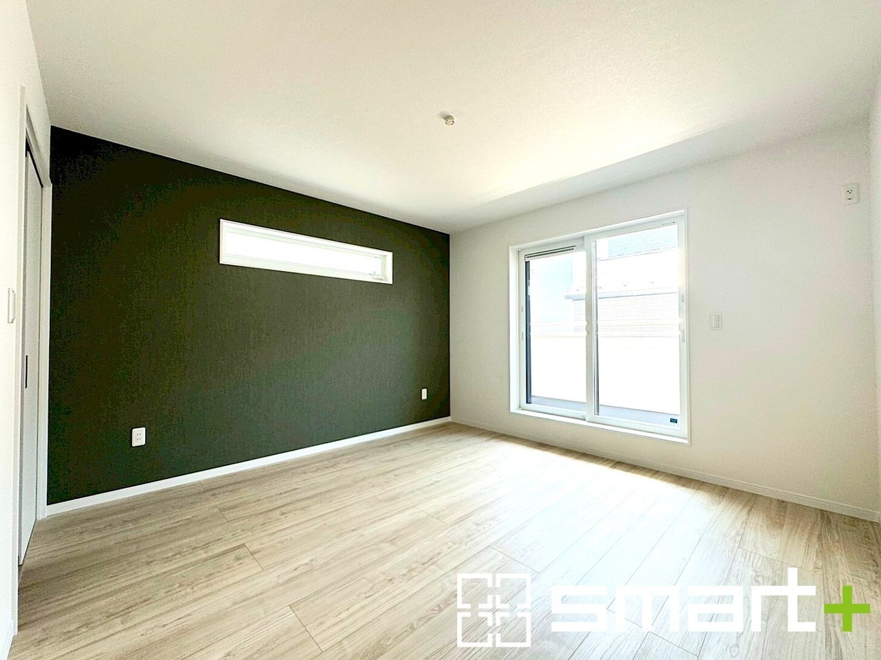~バルコニーに面した洋室~ ・バルコニー側の大きな窓から穏やかな陽が差し込む明るい洋室。 ・アクセントクロスでシンプルなお部屋もメリハリのある空間になりますね。