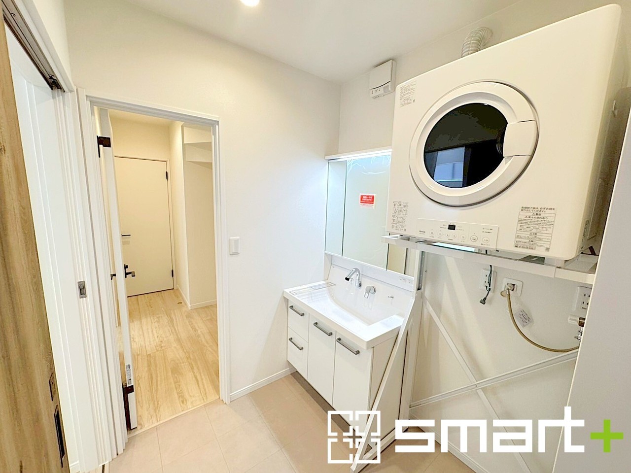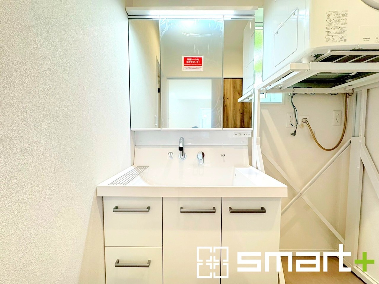 ~シャワー付き洗面化粧台~ ・使い勝手の良い三面鏡タイプのシャワー付き洗面化粧台。 ・衣類乾燥機Rinnai乾太くん付きも魅力の一つです。雨の日でもお洗濯が快適ですね。