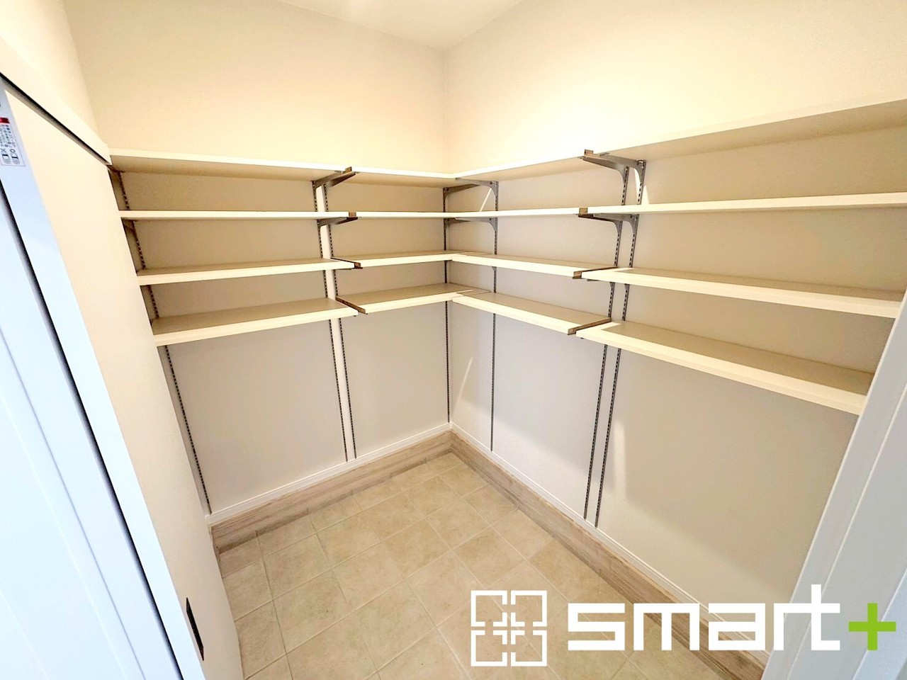 ~大容量のシューズインクローク~ ・ベビーカーやゴルフバッグ、お子様のスポーツ用品などたくさん収納できます。 ・便利な稼働式の棚で高さや大きさのあるものもスッキリしまえて快適。