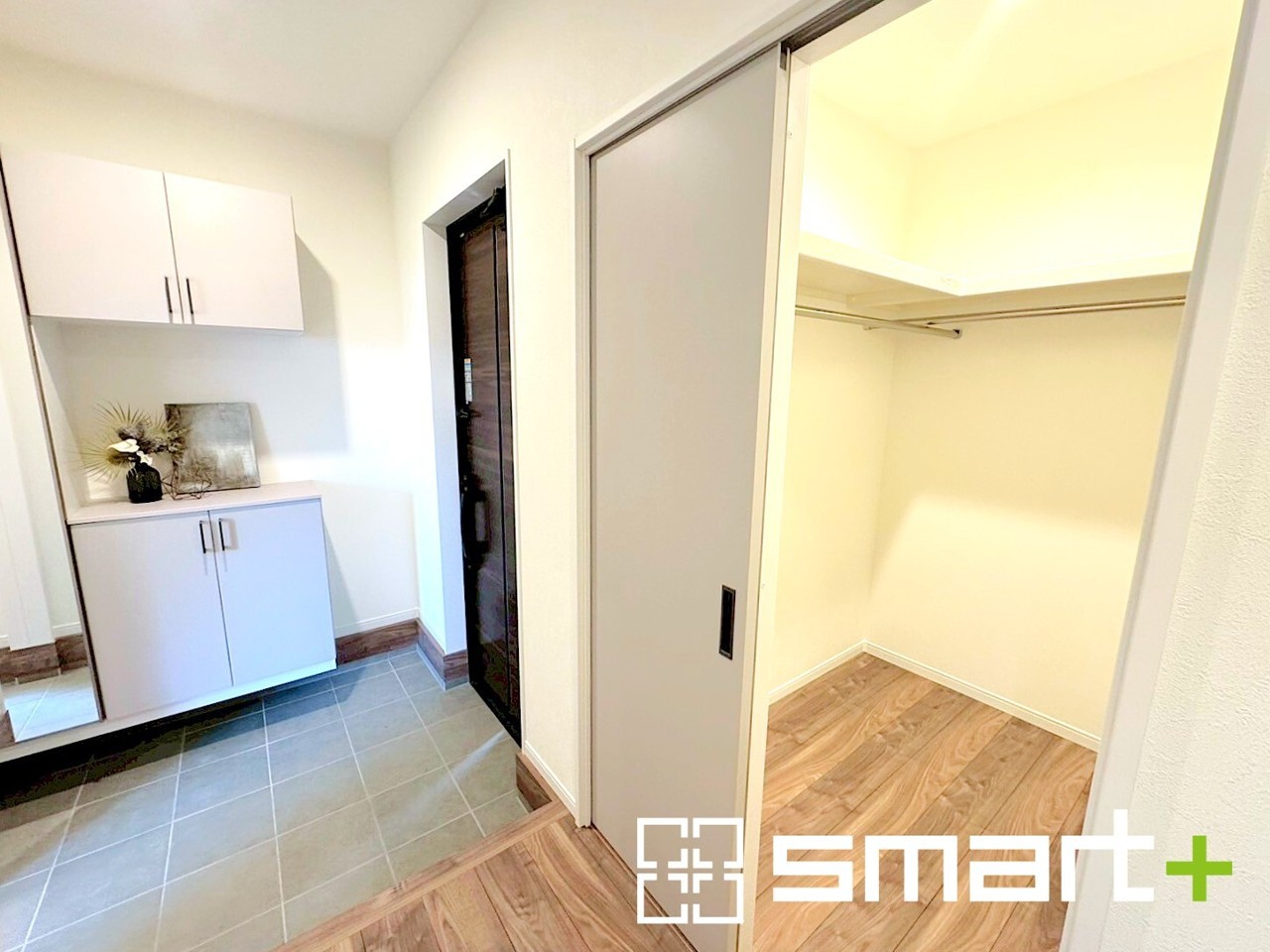 ~収納スペース充実の玄関周り~ ・広々とした玄関はシューズインクローク付なので散らかりがちな玄関もスッキリ。 ・備え付けのシューズボックスはミラー付なので朝やお出かけ前の身支度チェックに大活躍。