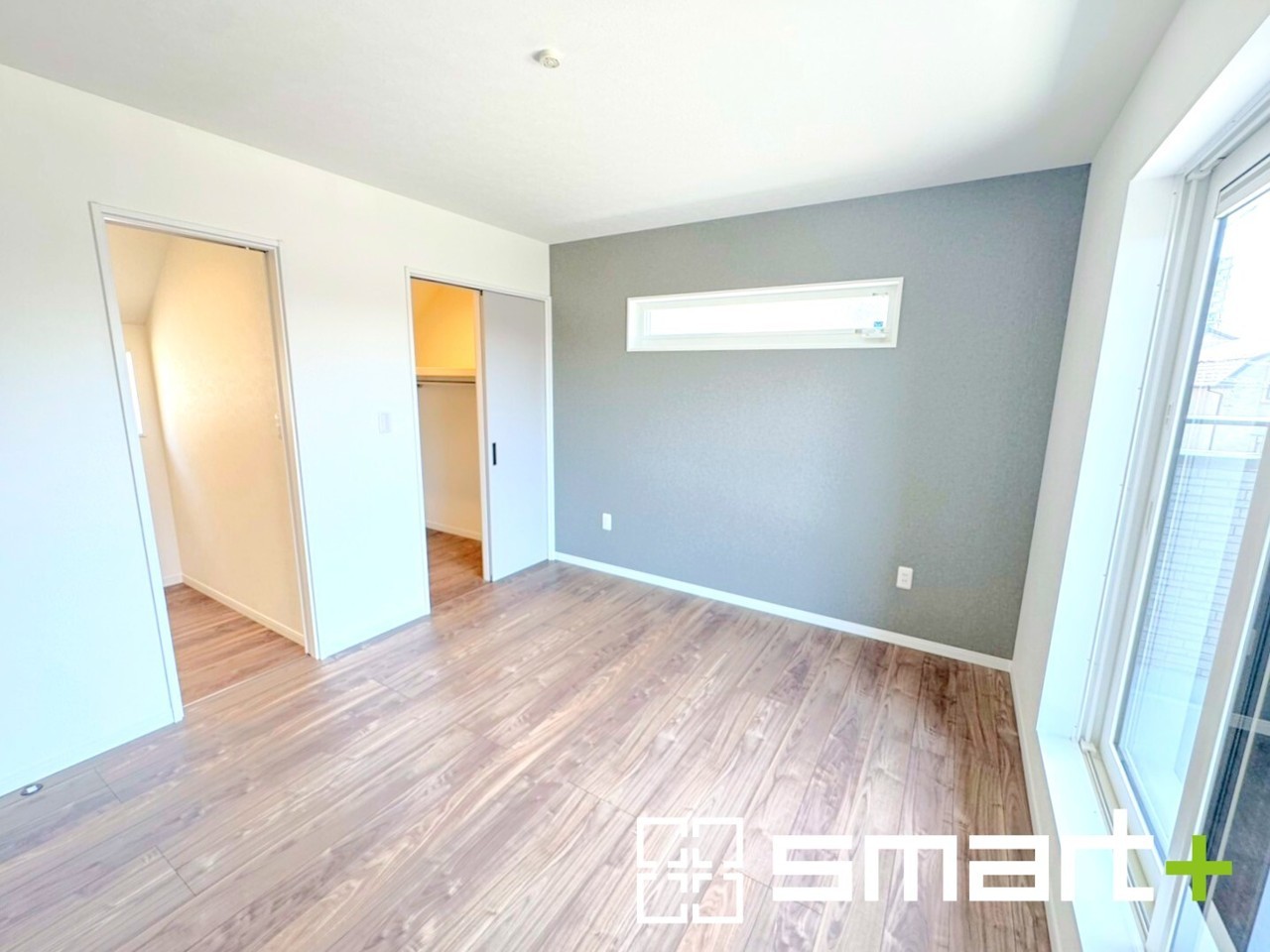 ~バルコニーに面した洋室~ ・バルコニー側の大きな窓から穏やかな陽が差し込む明るい洋室。 ・アクセントクロスでシンプルなお部屋もメリハリのある空間になりますね。
