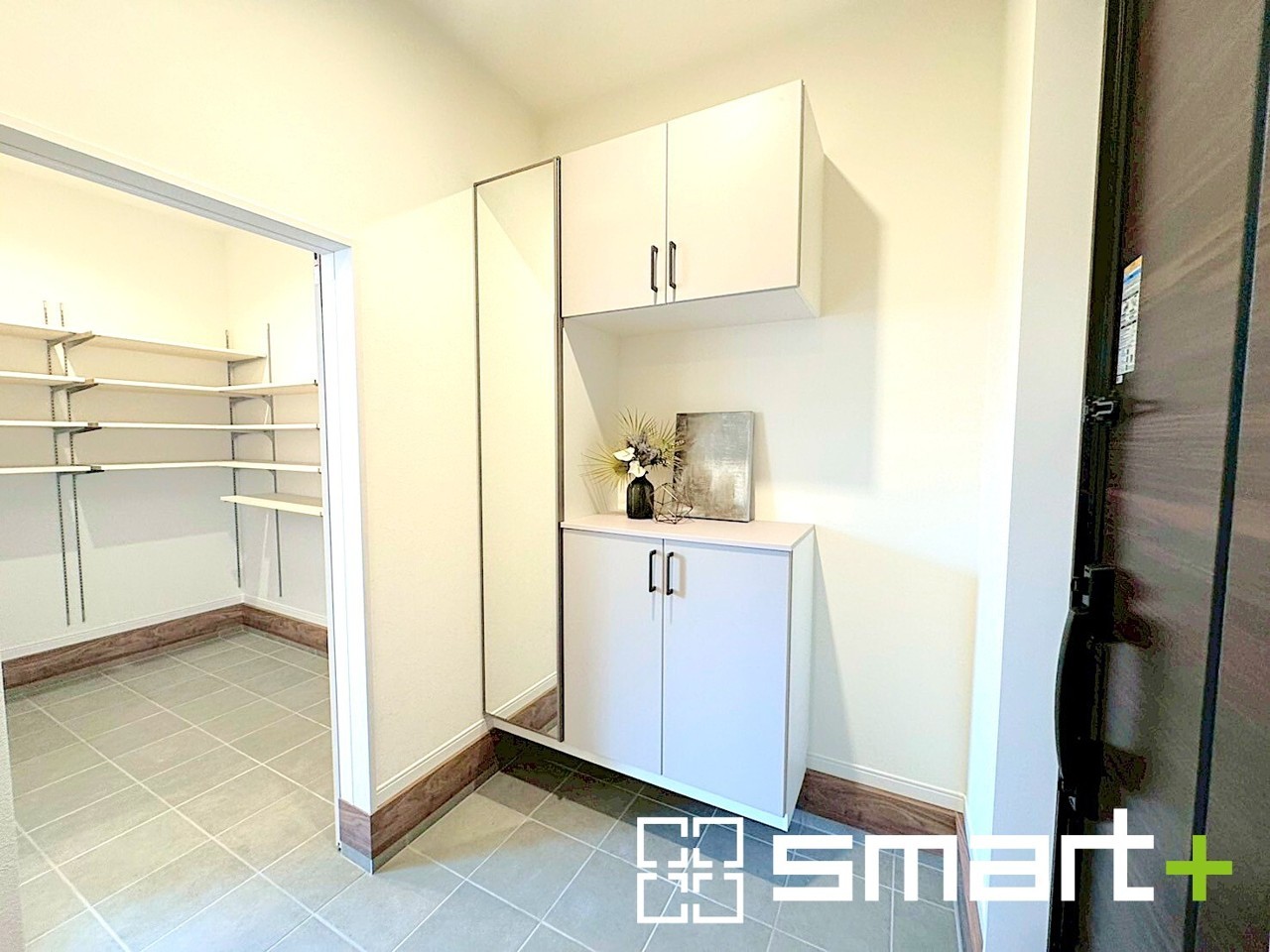~収納スペース充実の玄関周り~ ・玄関はシューズインクローク付なので散らかりがちな玄関もスッキリ。 ・備え付けのシューズボックスはミラー付。朝やお出かけ前の身支度チェックに大活躍です。 (2号棟)