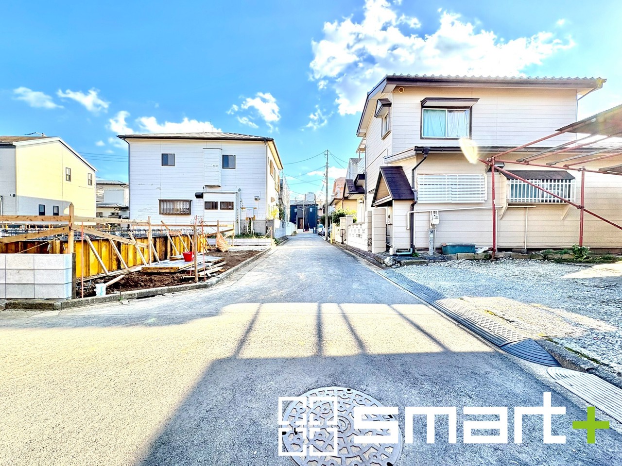 1号棟 ~十分な広さのある前面道路~ ・前面道路は約4mございますので、お車でのすれ違いも可能で余計なストレスがかかりません。 ・日々お車での移動が多い方には大切なポイントですね。