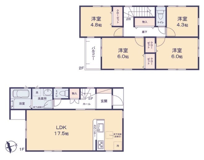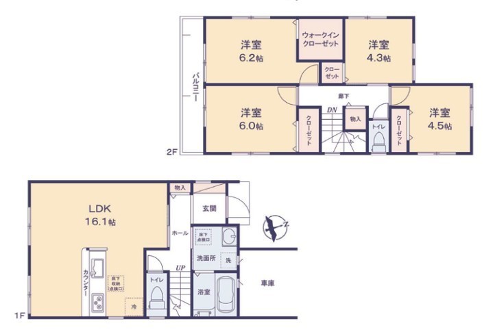 1号棟 使い勝手の良い4LDKプラン~ ・シンプルで使い勝手が良く、人気の高い4LDKのプランを採用。 ・収納もしっかりございますので、お家の中がスッキリと片付きます。