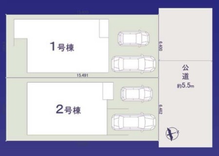 2号棟 ~カースペース2台以上確保~ ・各棟カースペースが2台以上ございますので、車通勤の方にもお勧めのプランとなっております。 ・余裕の敷地で余裕のある新生活をお過ごしいただけます。