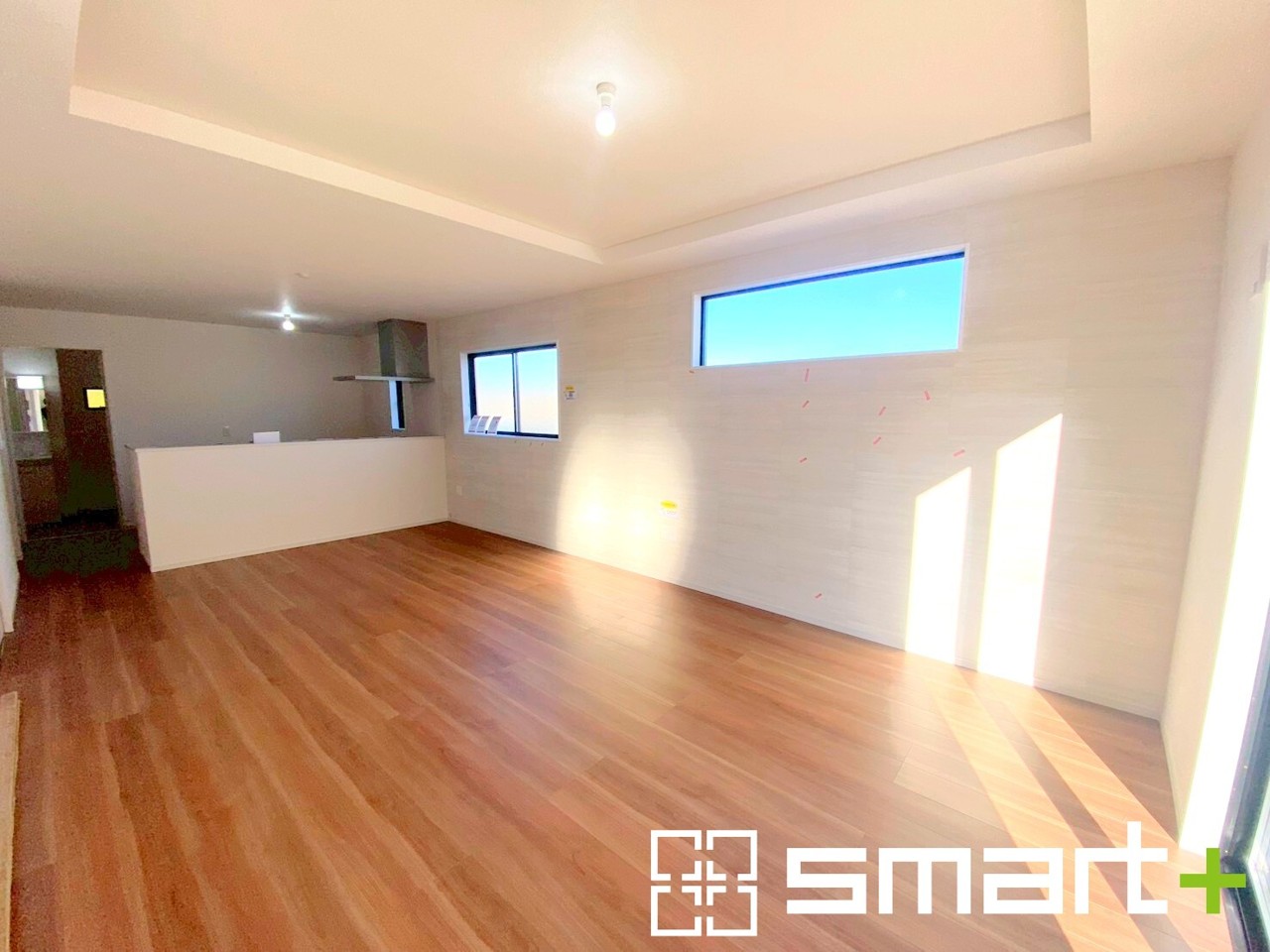~折り上げ天井のあるLDK~ ・一部天井を高くする折り上げ天井を配する事で縦への空間が生まれ、開放感のある広々とした仕様に。 ・ぜひ現地でその魅力をご体感くださいませ。