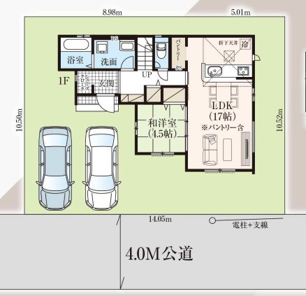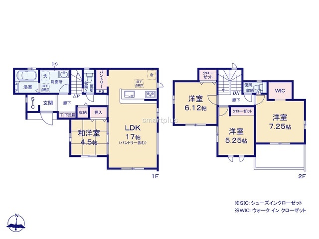 | 間取 | 4LDK + WIC+SC+パントリー (LDK17帖、和室4.5帖、洋室7.25帖、洋室6.12帖、洋室5.25帖) | ||