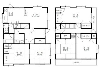 | 間取 | 5LDK (LDK13.75帖、和室8.5帖、和室8帖、和室8帖、洋室9帖、洋室8.5帖) | ||