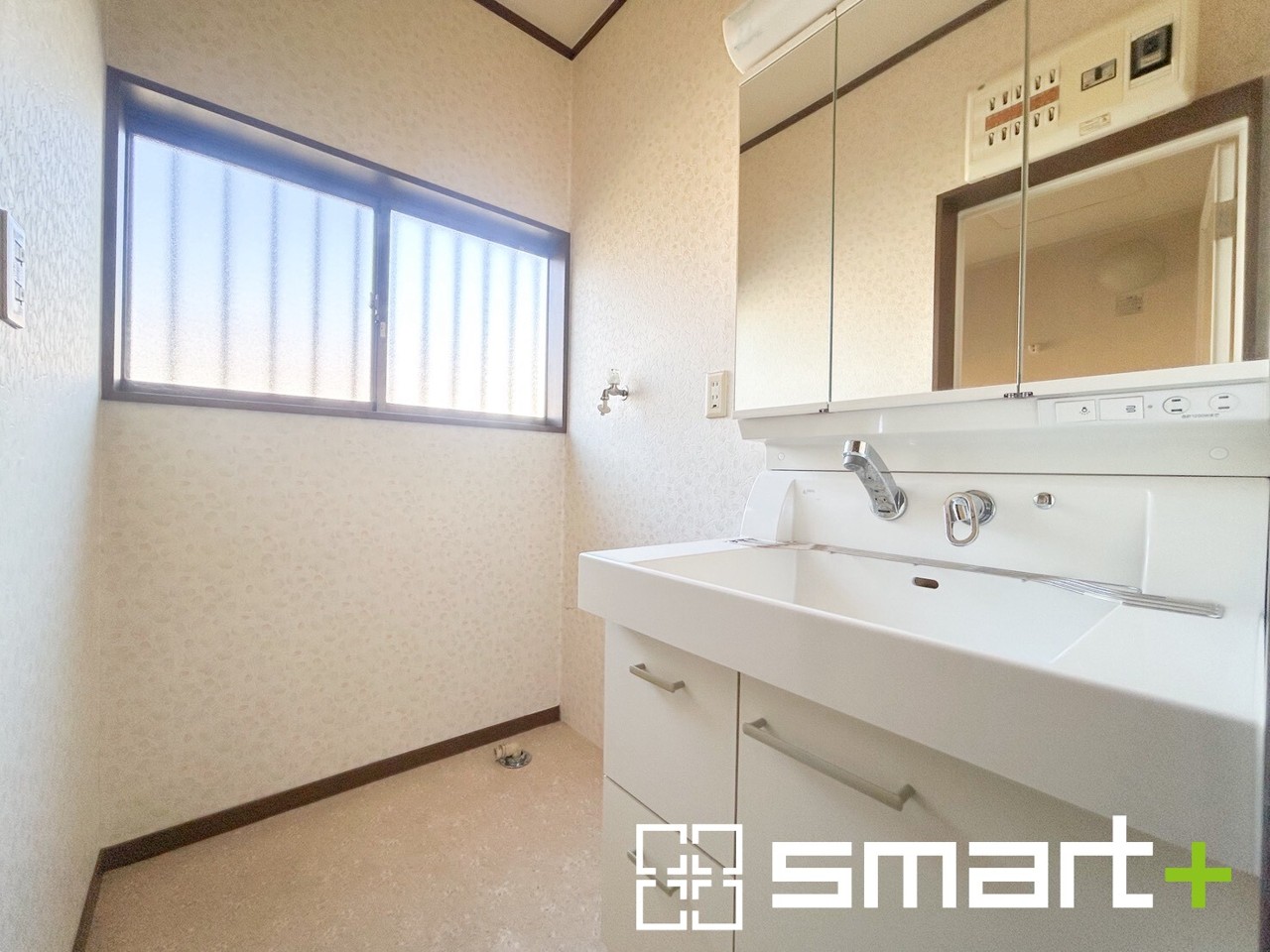 ~人気の三面鏡を採用~ ・洗面台は三面鏡仕様なので鏡の角度を変える事で頭の後ろの方までご確認可能です。 ・鏡の裏が収納になっておりますので、洗面台周りもスッキリと片付きます。
