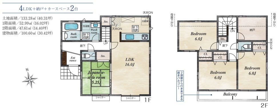 | 間取 | 4LDK + 納戸 (LDK16帖、和室5.25帖、洋室6帖、洋室6帖、洋室6帖) | ||