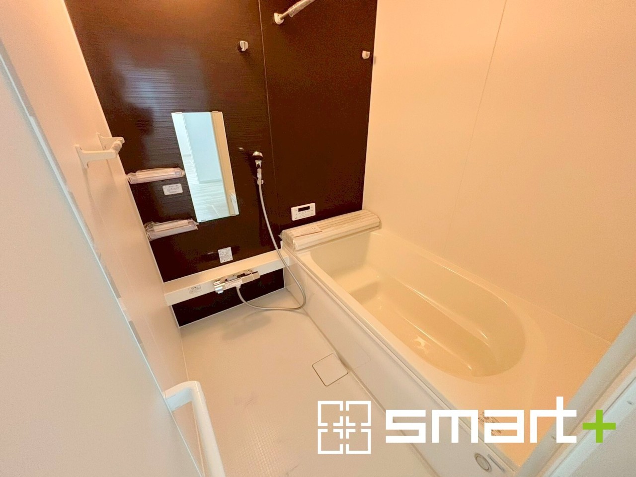 ~浴室乾燥機付きの浴室~ ・浴室には乾燥機が付いているので雨の日でも洗濯物を干すことが可能です。 ・水はけの良い床材など機能面も充実。マイクロバルなどオプションもご相談くださいませ。 (1号棟)