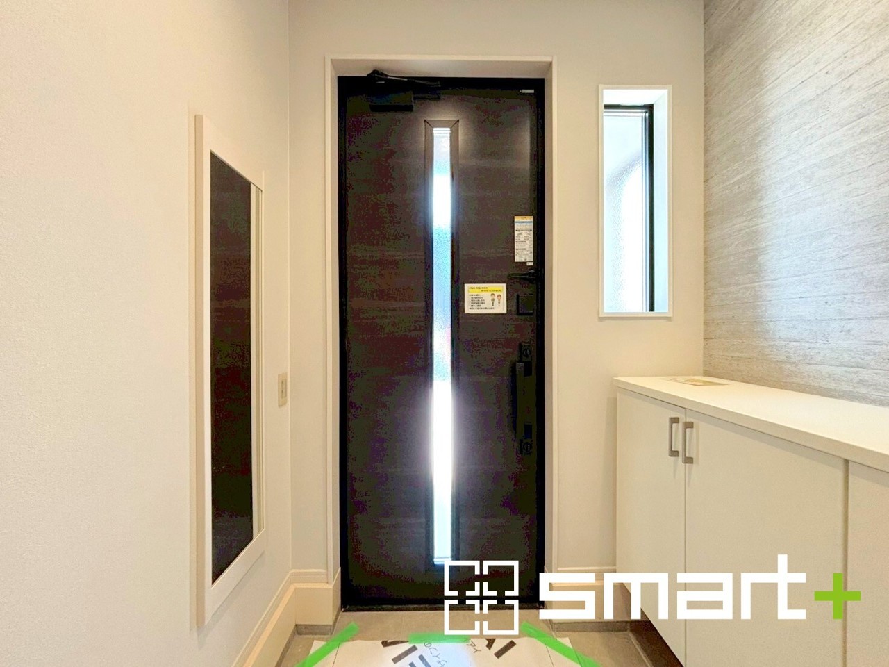 ~圧迫感のない明るい玄関~ ・窓に加えて玄関ドアのガラス部分からも穏やかな陽が入り、明るい玄関になります。 ・備え付けのシューズボックスはたっぷりしまえて玄関がスッキリ片付きますね。 (1号棟)