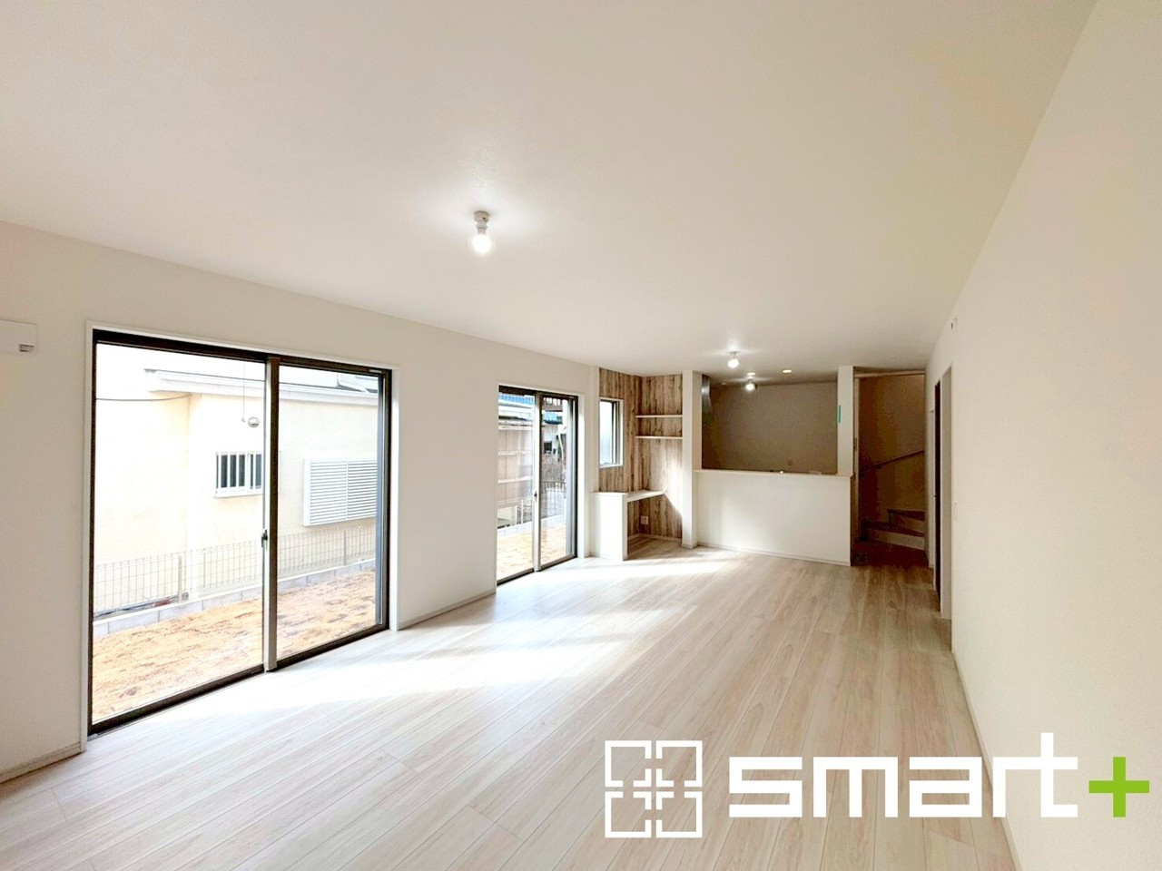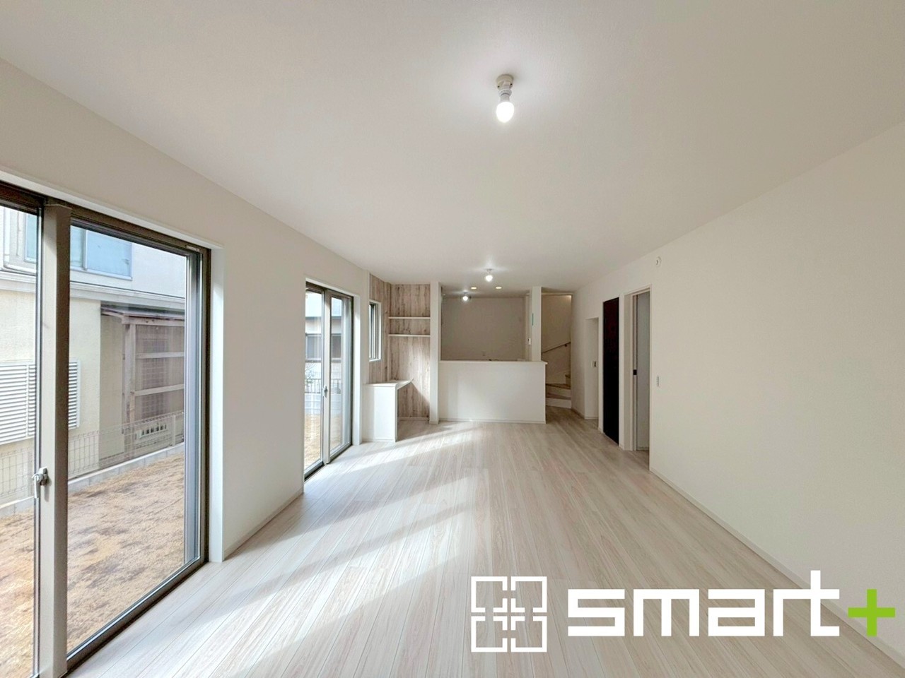 ~日当り良好のLDK~ ・たくさんの窓からたっぷりの陽光が差し込む明るいリビングで寛ぎのひと時を。 ・料理と洗濯、片付けなど並行して家事を進める時に便利な回遊動線。