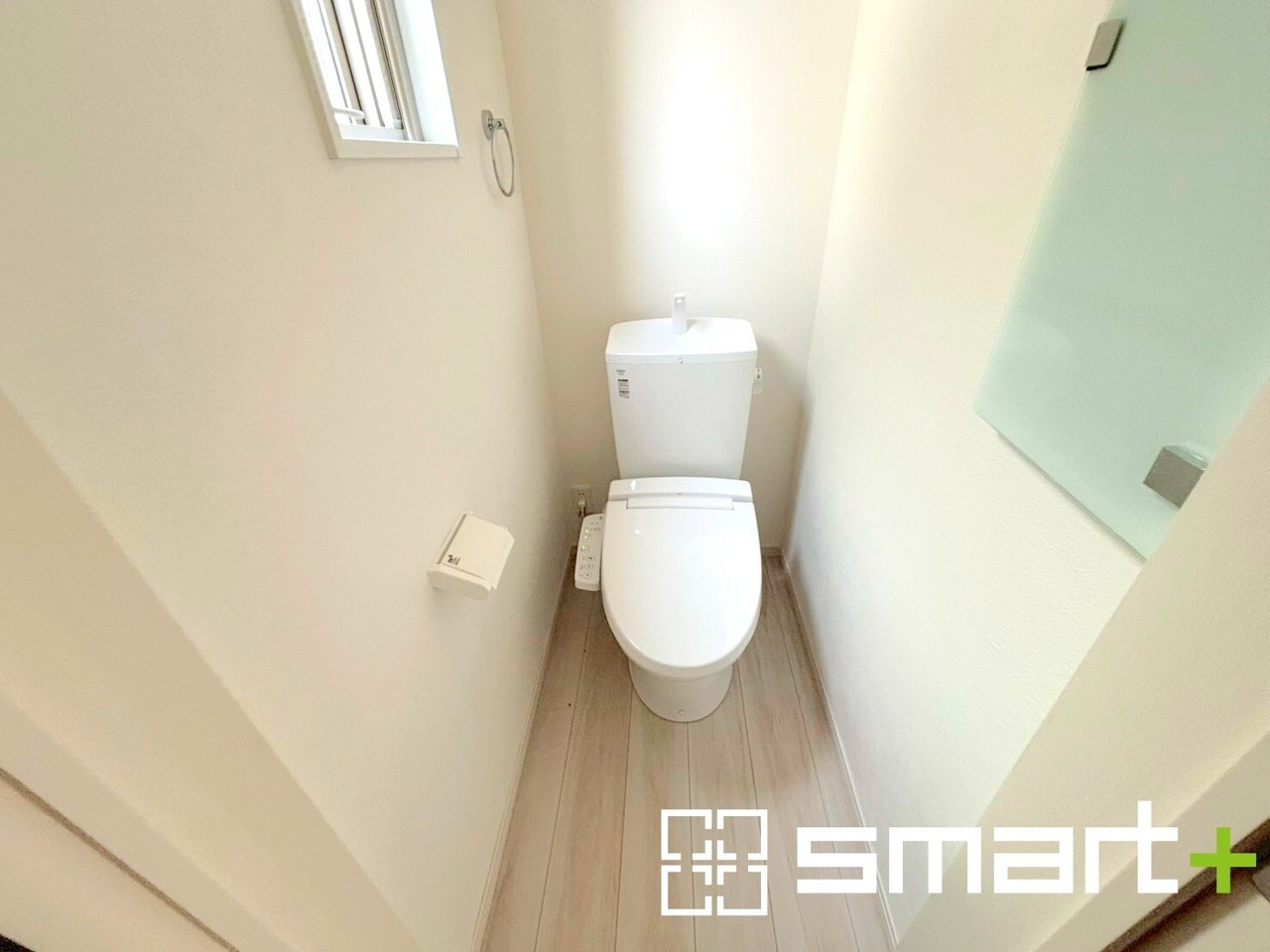 ~窓付きの明るいトイレ~ ・使用後や掃除の際に窓を開ければ、外からの新鮮な空気を取り込み素早く換気ができます。 ・埋め込み収納付きでストックや掃除用具もスッキリ片付きますね。