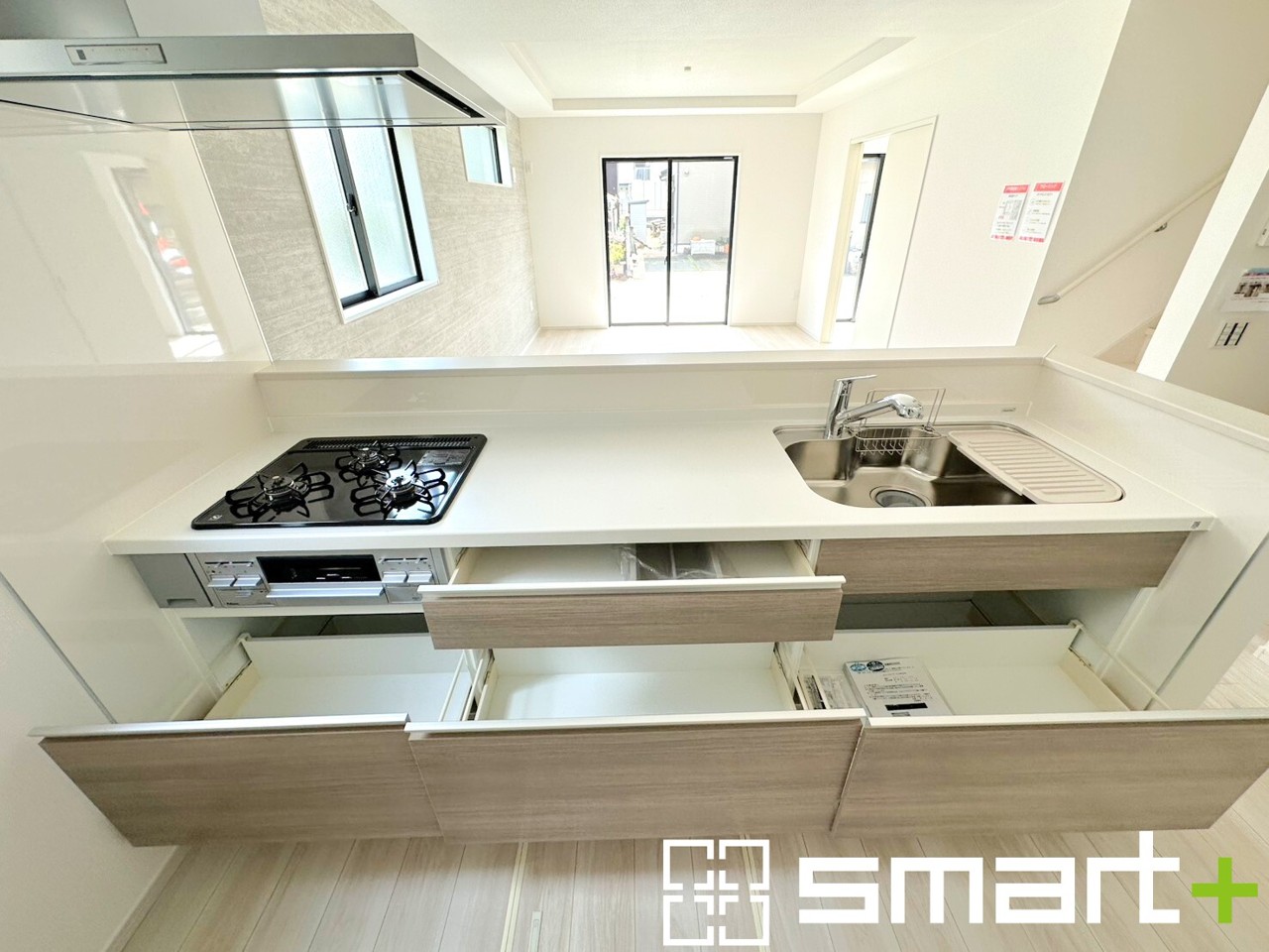 ~人気のカウンターキッチン~ ・キッチンには余計な柱が無いので、リビングが見渡せ開放感のある造りとなっております。 ・蛇口には浄水器が内蔵されるなど機能面でも優れたキッチンです。