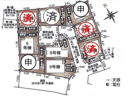 | 用途地域 | 第一種住居地域/第一種低層住居専用地域 | 建ぺい率 | 60%/50% |