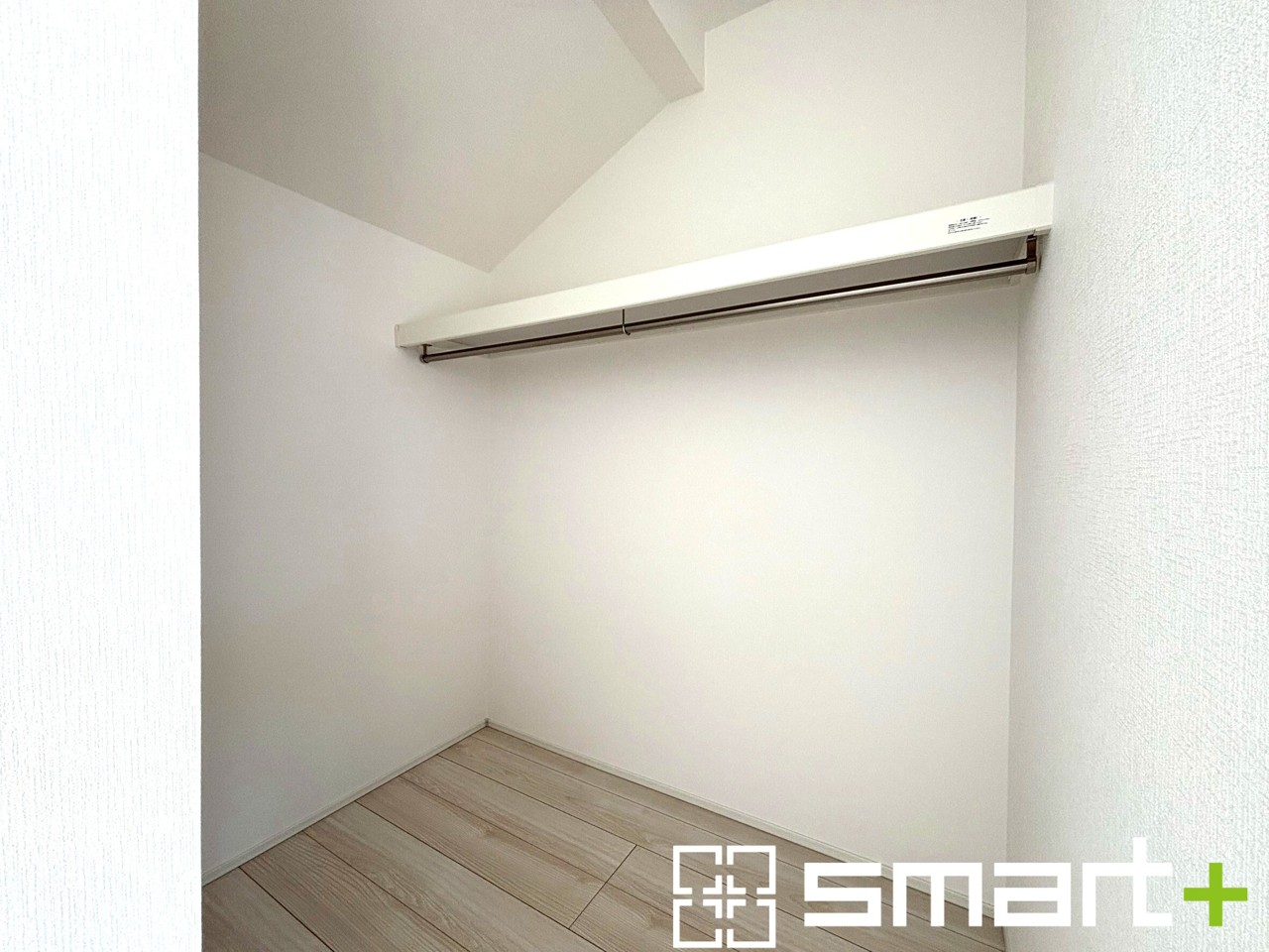 ~憧れのウォークインクローゼット~ ・居室にウォークインを設ける事で季節ものや趣味の用具などもスッキリと収納可能です。 ・ぜひ現地でその便利さをご体感くださいませ。