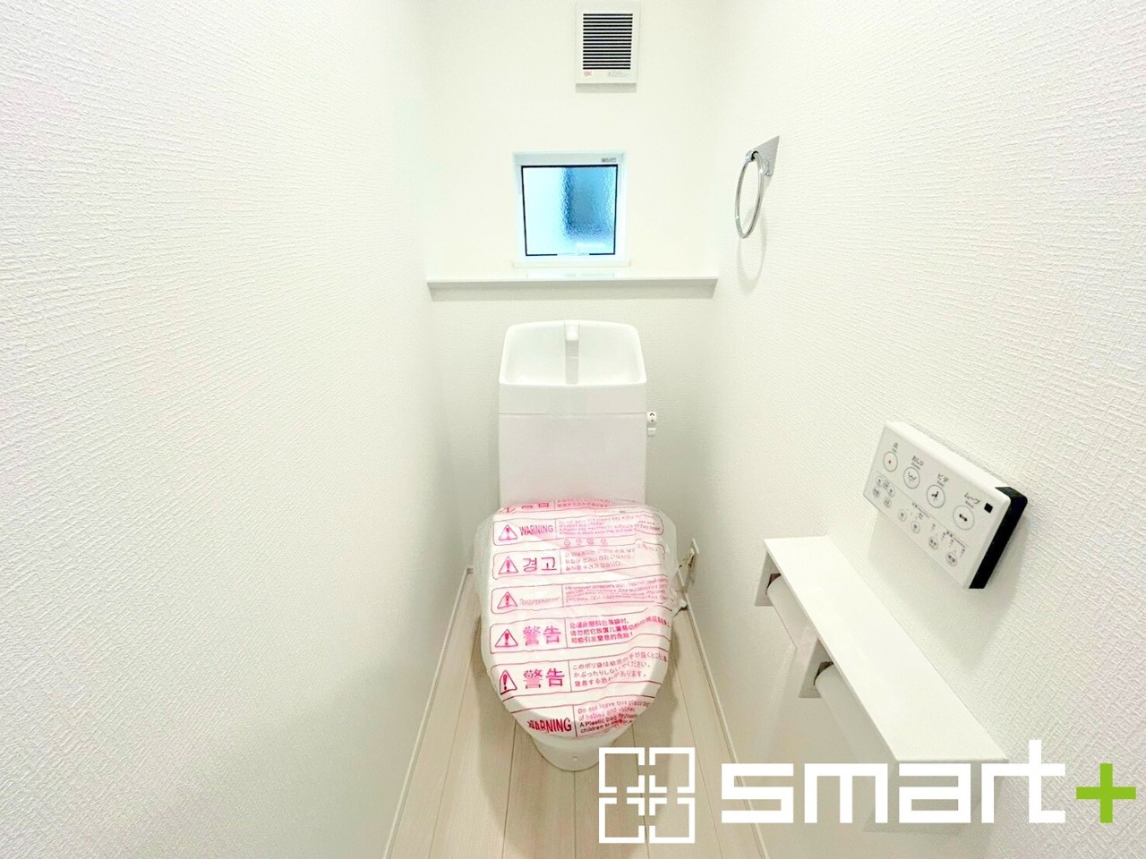 ~小窓付きの明るいトイレ~ ・使用後や掃除の際には新鮮な空気を取り込み換気ができます。 ・背面のスペースにちょっとした棚を設置すれば、トイレットペーパーのストックなども置けますね。