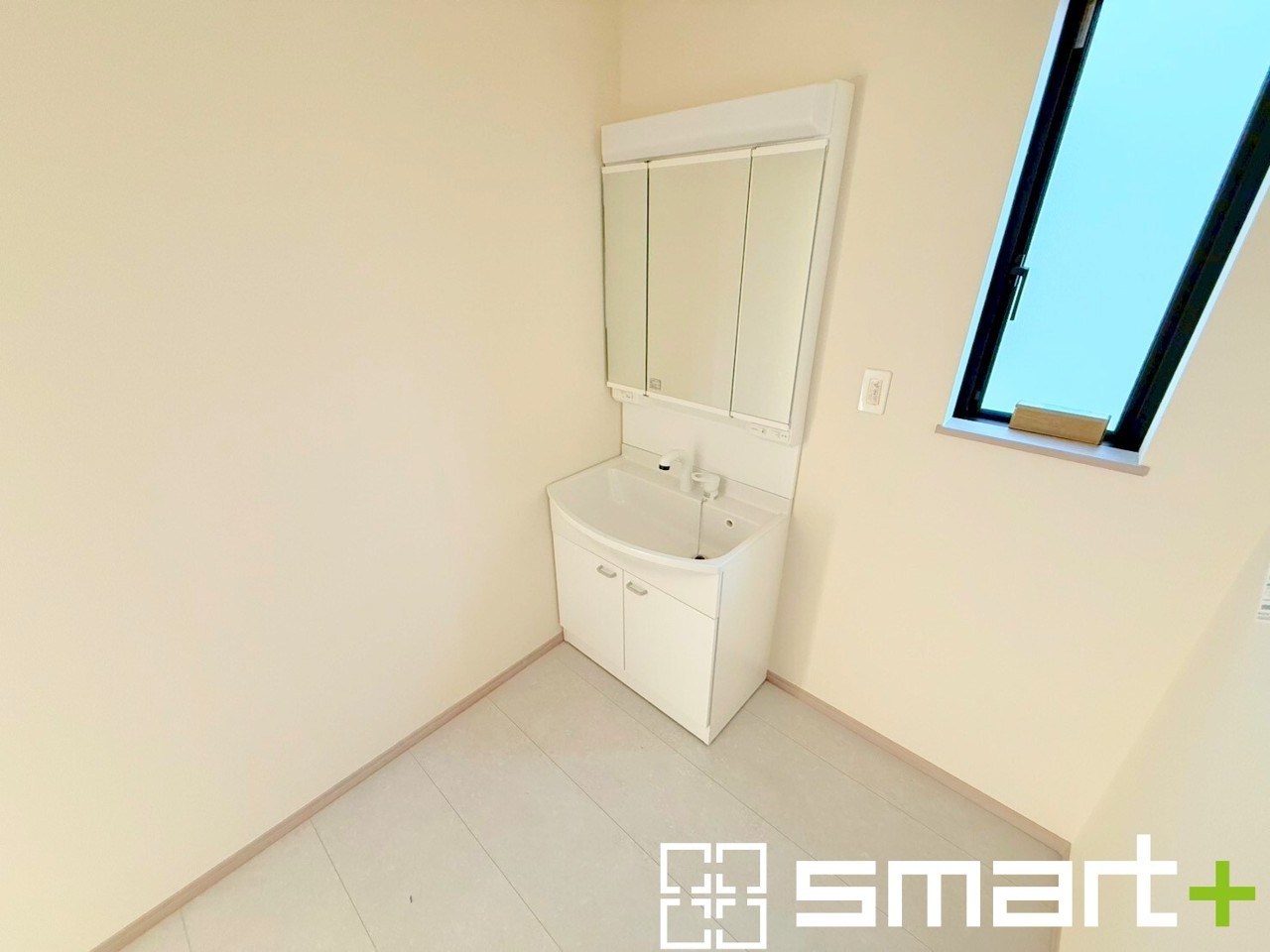 ~明るい洗面スペース~ ・窓から明るい陽が入り、気持ちよく朝の支度ができますね。 ・使い勝手の良い三面鏡タイプのシャワー付き洗面化粧台。鏡の裏に収納があるので洗面台周りもスッキリ。
