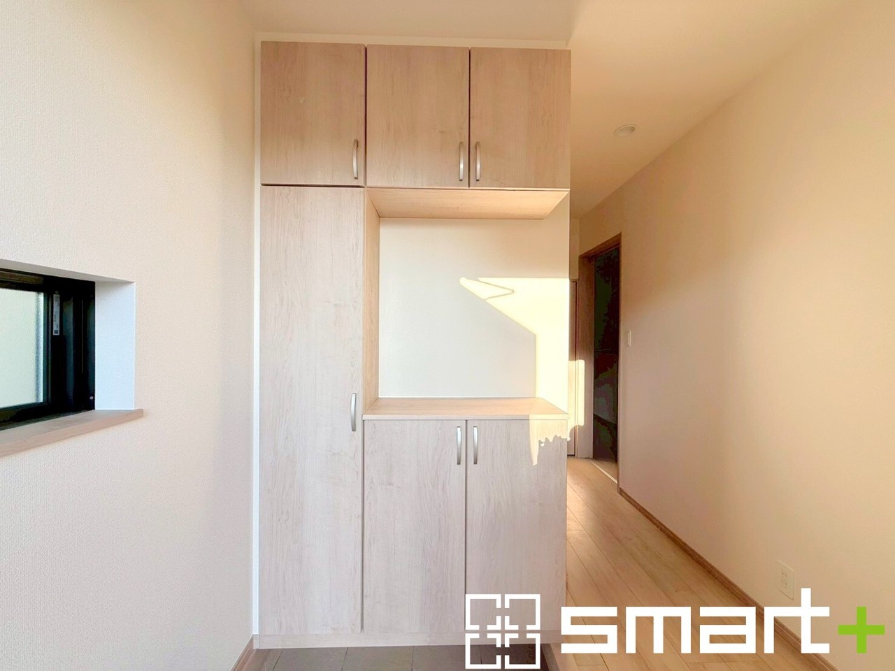 ~ナチュラルカラーの玄関~ ・優しいナチュラルカラーで纏められた玄関は圧迫感もなく広々とした印象。 ・飾り棚としても演出できるコの字型のシューズボックスは大容量の収納力。