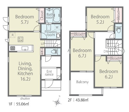 2号棟 ~収納豊富なプランを採用~ ・ウォークインクローゼット、シューズインクロークなど収納豊富なプランを採用。 ・今のお住まいと収納力をぜひ比較してみてください。