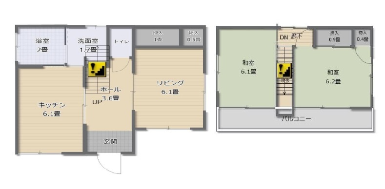 | 間取 | 2LDK (L6.1帖、DK6.1帖、和室6.2帖、洋室6.1帖) | ||