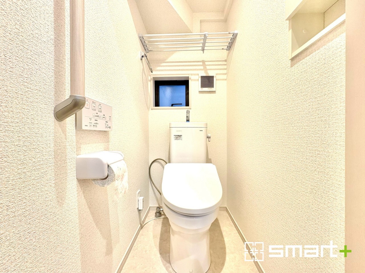 ~窓付きの明るいトイレ~ ・使用後や掃除の際に窓を開ければ、外からの新鮮な空気を取り込み素早く換気ができます。 ・埋め込み収納付きでストックや掃除用具もスッキリ片付きますね。