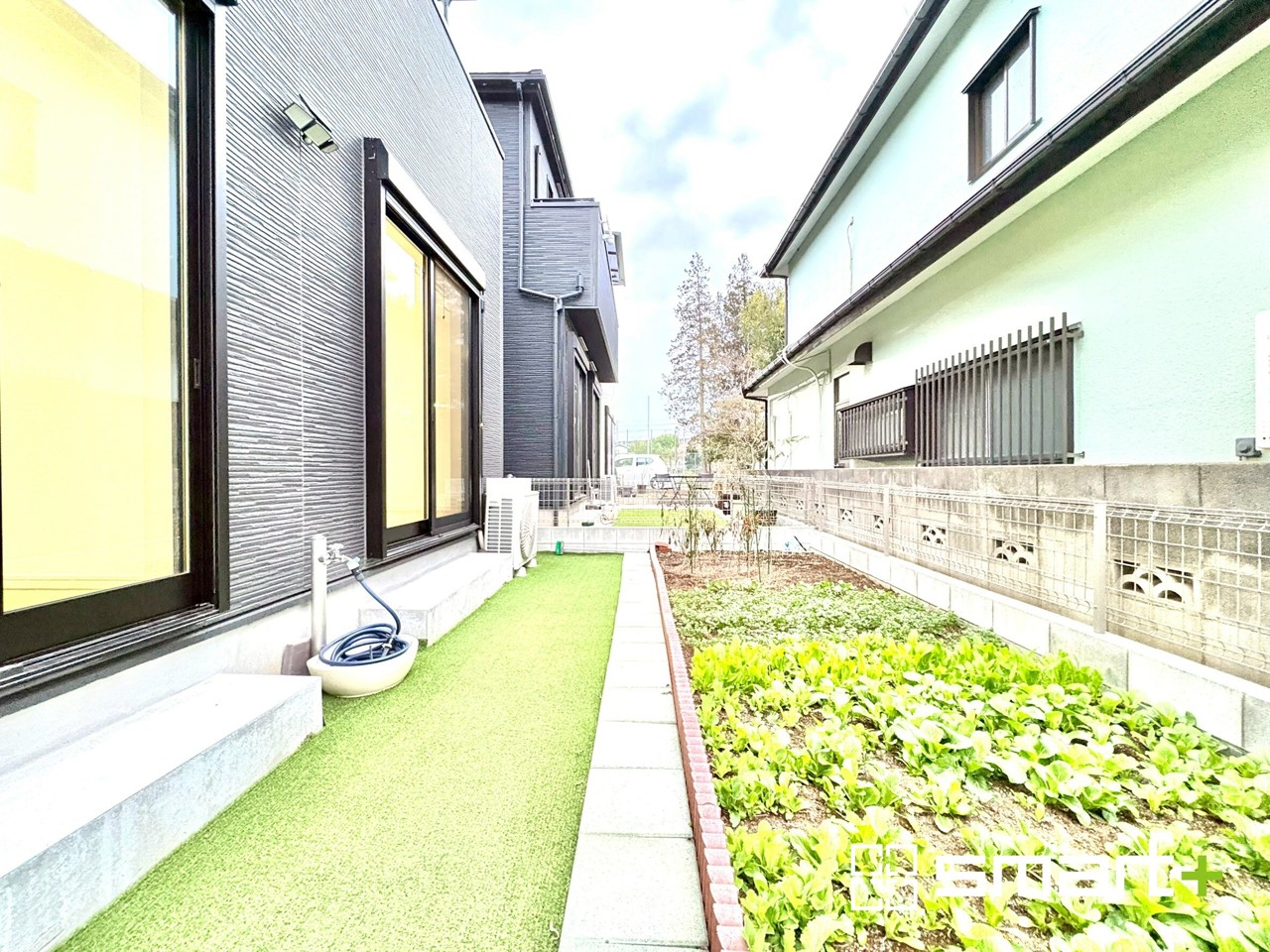 ~人工芝のある綺麗なお庭~ ・標準で人工芝を敷設しておりますので、見た目にも綺麗なお庭となっております。 ・人工芝の場合雑草が生えてこず、管理が楽なのも嬉しいポイントです。