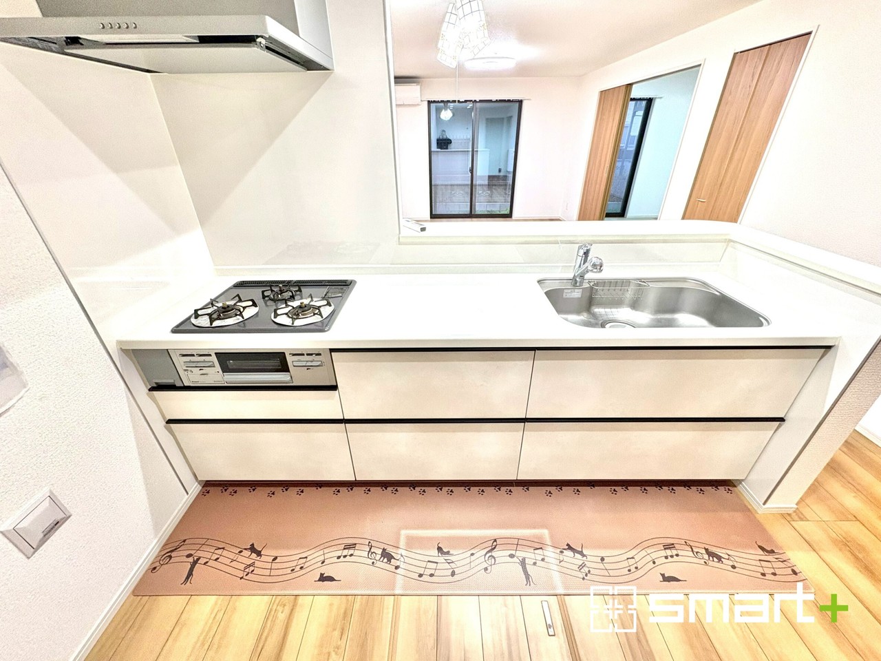 ~使い勝手の良いシステムキッチン~ ・料理がしやすい設計のキッチンでお料理もはかどりますね。 ・もちろんキッチン下部は収納になっておりますので、フライパンなども収納可能です。