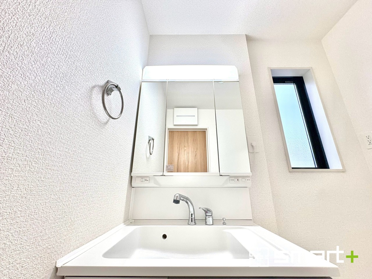 ~人気の三面鏡を採用~ ・洗面台は三面鏡仕様なので鏡の角度を変える事で頭の後ろの方までご確認可能です。 ・鏡の裏が収納になっておりますので、洗面台周りもスッキリと片付きます。