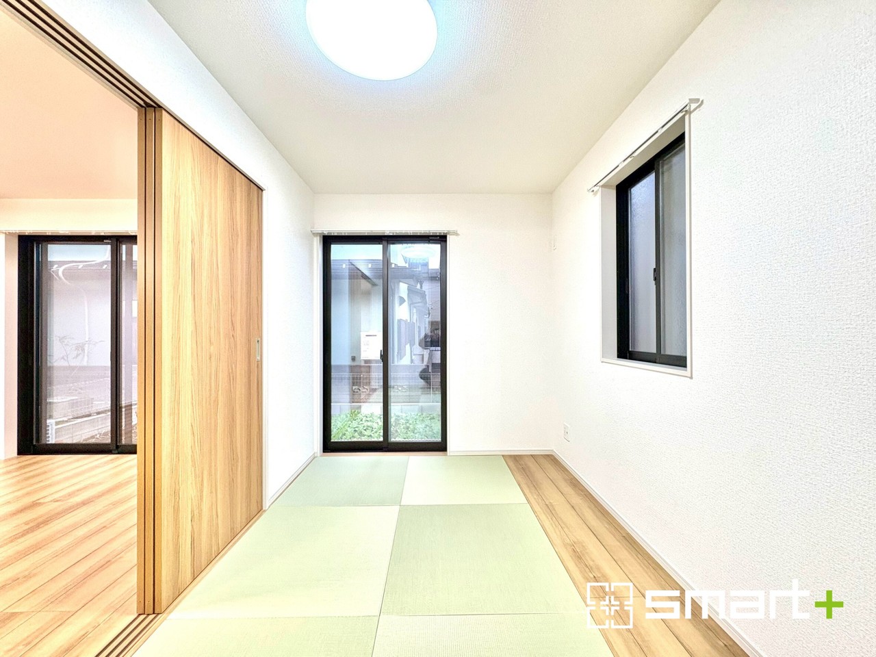 ~リビング横の和室~ ・リビング横には開放感をプラスしてくれる和室付。モダンな洋風タイプでオシャレ感アップ。 ・2面採光で日当たり良好。明るい空間が広がります。